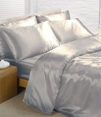 4 Pieces Soft Reversible Satin Solid Silver Duvet Cover , Fitted Sheet