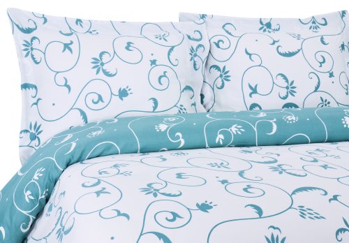 Bella Collection Full/Queen Size Cotton Sateen 3-Piece Reversible Duvet/Sham Set—Bring a breath of fresh air into your bedroom with the Bella Collection Duvet Set. The bold leaf and vine silhouette motif on a white base is a modern design that’s meant to brighten up and give your bedroom a plush and homey feel. The 3-piece full/queen size duvet set starts with amazingly soft single-ply 300 thread-count 100-percent cotton sateen that has been calendared and mercerized. The benefit to you is a duvet and shams that have a beautiful sheen, higher luster, increased durability and are smoother to the touch. This full/queen size set includes a 90 by 90-inch duvet cover and two standard size 20 by 26-inch shams. A button closure is added to the bottom edge of the duvet to keep comforter secure and hidden while the shams have convenient envelope closures. Coordinating Bella 4-Piece Full and Queen Size Sheet Sets are also available thru Amazon. Machine wash cold; Tumble dry