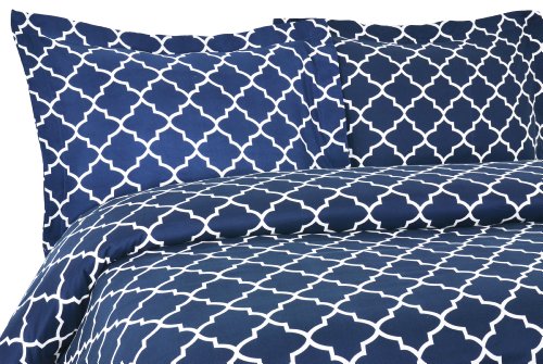 Elite Home Collection Charleston Geometric Print King Size Microfiber 3-Piece Duvet/Sham Set — One of the easiest ways to freshen up and improve the look and feel of your bedroom is to add a new duvet set to your bed. The Geometric print design and vibrant, bold colors on both sides of the Charleston duvet and shams are sure to complement and brighten up your bedroom décor. The Charleston Duvet Set is constructed with extremely fine 100-percent polyester micro-fiber that remains light, soft and durable even after repeated washings. This king size set includes a 104 by 90-inch duvet cover and two king size 20 by 36-inch shams. A button closure is added to the bottom edge of the duvet to keep comforter secure and hidden while the shams have convenient envelope closures. Additional Elite Home Duvet sets are also available thru Amazon. Machine wash cold; Tumble dry low.