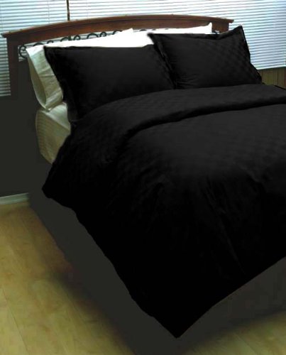 - 300TC Egyptian Cotton KING EURO CHECK BLACK Duvet Cover Set