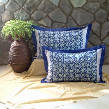 Rest your head upon our 100% cotton decorative flanged pillow shams and let sweet slumber gently erase your worldly cares away. Accessorize lavishly and complete the look of your exotic handcrafted bedding ensemble by picking pillow shams / covers that either match or complement your choice of duvet cover or bedspread.Each pillow cover is sized to fit standard pillows that are 21 inches long and 27 inches wide. The outer dimension including a 2 inch flange is 25x31 inches. Each pillow sham is printed on preshrunk, superior grade, soft cotton and is exquisitely finished with neatly interlocked seams and a generous, immaculately tailored flap closure at the back (inserts not included).Each piece is handcrafted using intricately hand carved wooden blocks and is an original work of art distinguished by the work of the artisan, the particular lot of dye, and even varying weather conditions. Tonal variations are inherent to the block printing process and enhance the individuality, character and uniqueness of each creation.About Midnight Lotus: Envision a lotus pond at midnight replete with ethereal white lotus blossoms, sinuously intertwined, floating gently on deep cobalt blue waters. The lotus enjoys rich material and spiritual symbolism in Indias arts, religions and systems of thought. The lotus, in which the gods discovered their grace and majesty; artists the subtlest expression of beauty; and mystics, dimensions of mysticism and intricate cosmic existence; is the primary flower of India. Since the lotus blooms from the underworld into light, the lotus motif is symbolically associated with transcending of mans spirit over worldly matters.