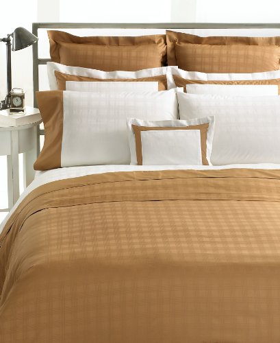 A soft damasked duvet cover by Ralph Lauren. Glen Plaid in Camel color.