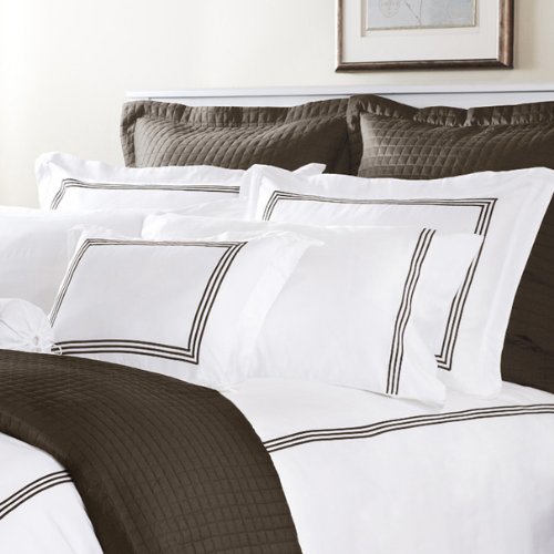 Twin Size Duvet with One Standard Size Sham. Tripple Embroidered Chocolate Stripes on a 300 Thread Count White 100-Percent Cotton Sateen Ground create a classic and elegant ensemble that will always be in fashion. Our most popular color.