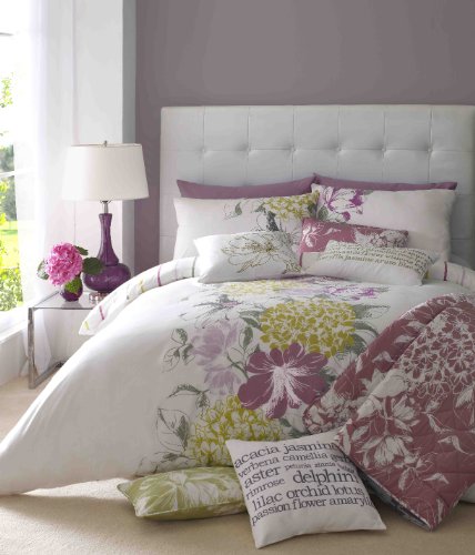 - SUPERB JANET REGER 100% COTTON DESIGNER QUEEN SIZE FLORAL LILAC MAUVE WHITE DUVET SET